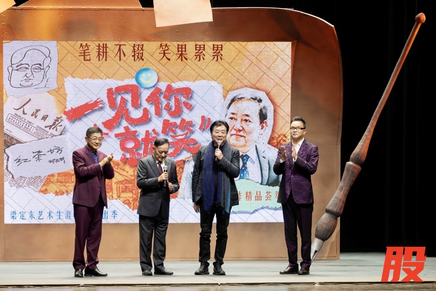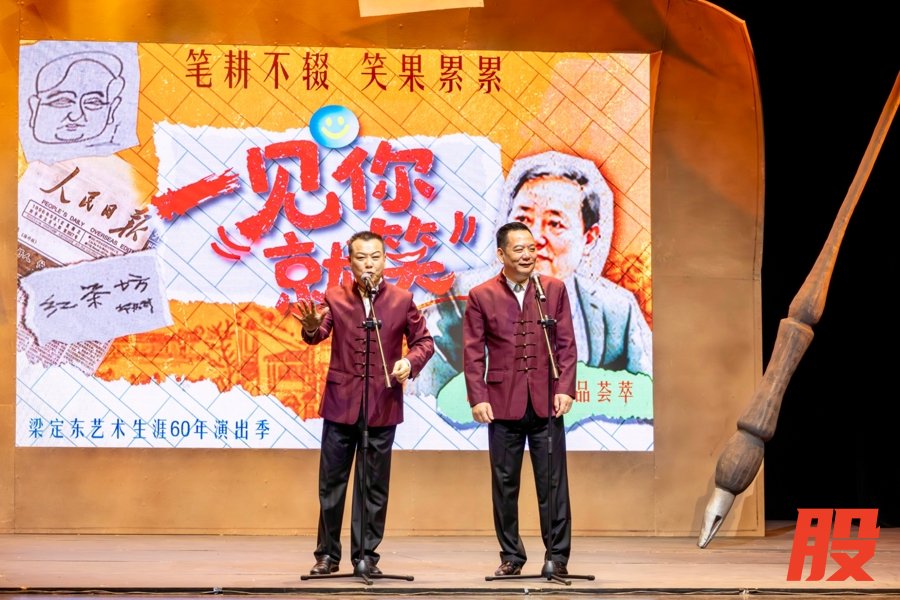 《“笔耕不辍 笑果累累”梁定东艺术生涯60年演出季》,五场演出场场爆满。80岁的梁定东登台过生日,叶惠贤主持,王汝刚毛猛达陈国庆潘前卫送祝福