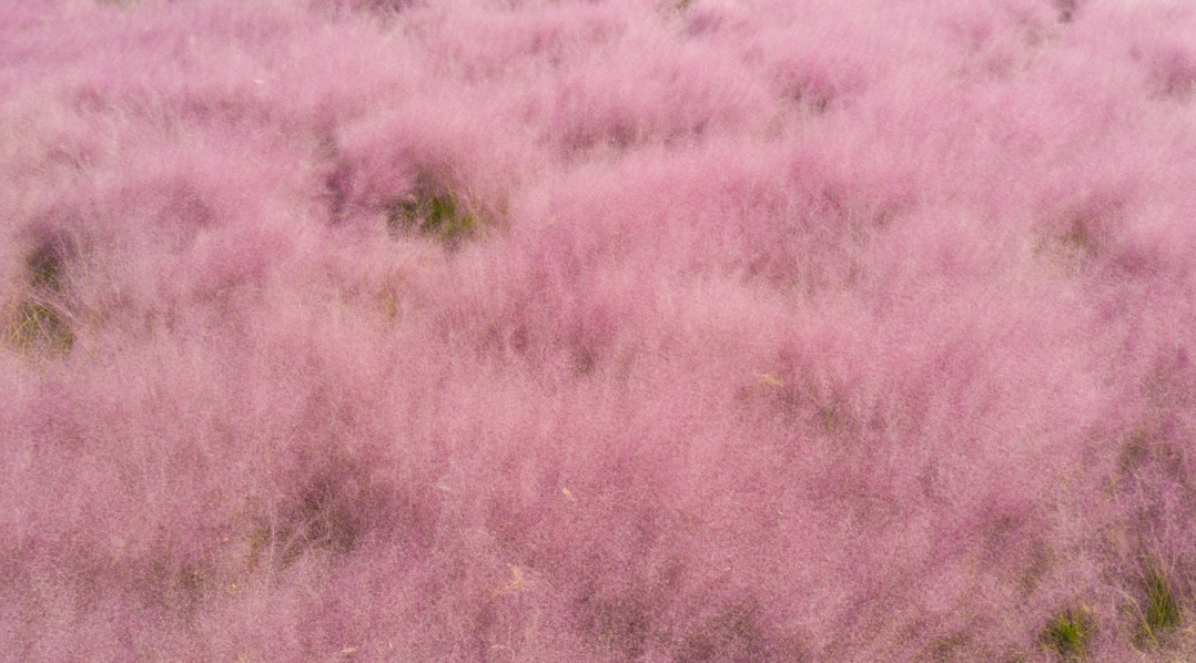作为城市中心的\"绿肺\",奥森北园在秋日化身为浪漫的粉色仙境。这里的粉黛乱子草与地肤草巧妙搭配,形成蝶形花田,仿佛大自然打翻了调色盘