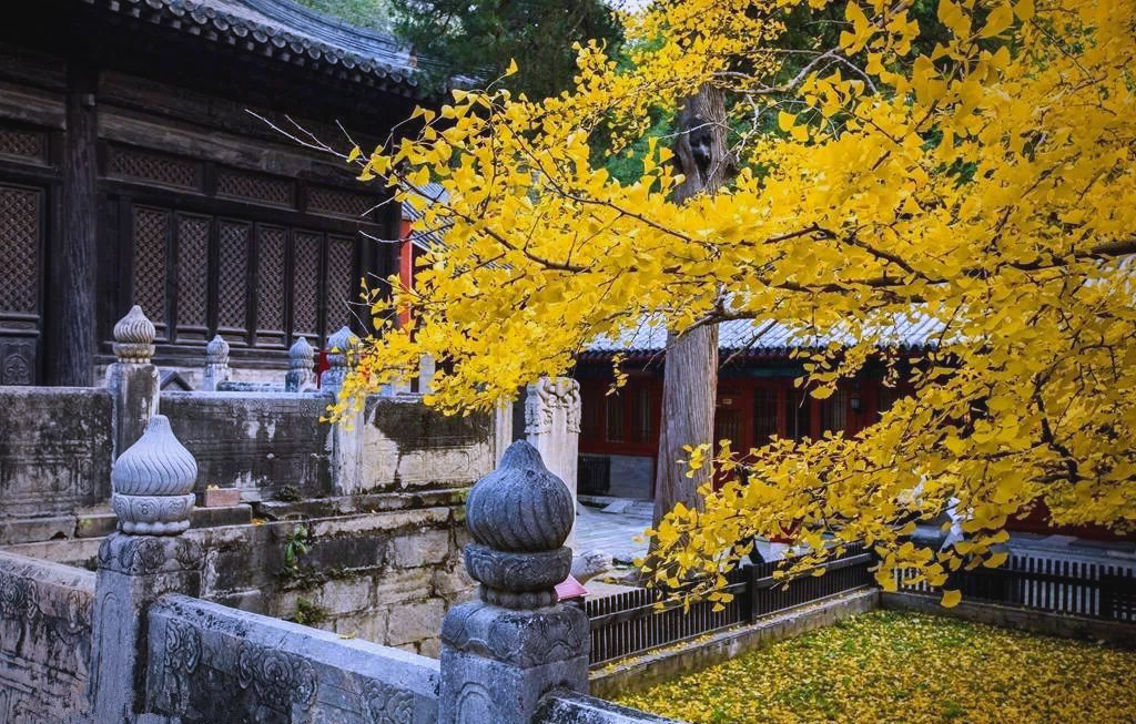 寺里的两株唐代银杏,树龄超 1300 年,高达 40 米,树干周长 7 米,是北京最老的银杏之一!