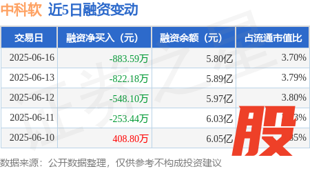 本站消息德恒财富,6月16日,中科软(603927)融资买入983.63万元,融资偿还1867.22万元,融资净卖出883.59万元,融资余额5.8亿元,近20个交易日中有11个交易日出现融资净买入。
